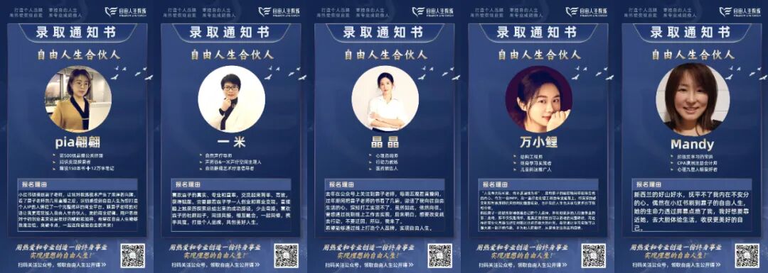 自由人生教练:由Alina霖子创立于2022年2月。旨在帮助每个普通人挖掘自己的潜力,学习人生教练、打造个人品牌,提升生命能量状态,用知识技能和擅长热爱的事情成就一份属于自己的事业。