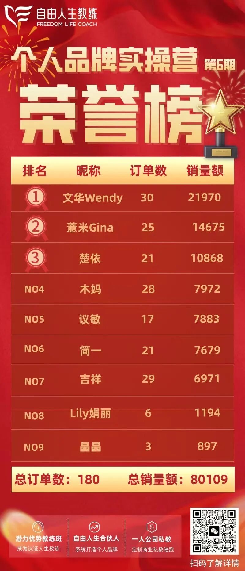 与此同时,【自由人生合伙人】社群也在悄然壮大。越来越多来自不同领域的行业专家选择加入这支充满温度与可能性的队伍。她们的到来不仅丰富了社群的多样性,也为大家带来了更加专业、多元的视角与资源。她们的加入,是对“打造个人品牌”这件事最有力的证明——它不只是锦上添花,更是专业价值的放大器,是连接世界的引力场。在这个四月,我们还迎来了【第6期个人品牌实操营】的圆满收官。10位自由人生合伙人,在为期21天的学习与实践中,将多年来的经验沉淀为属于自己的第一个个人品牌产品,并在四月的最后一个周六,完成了她们人生中的第一次商业路演。这段旅程并不轻松。有人已经许久没有使用朋友圈,每次鼓起勇气想发第一条营销内容时,都会反复斟酌,担心别人怎么看待自己;有人对线上营销毫无概念,一切都得从零开始摸索;还有人则在现实生活中面对着诸多制约副业发展的阻力,每前进一步都像是在厚重泥沼中艰难跋涉。但即使如此,她们没有停下脚步。因为她们知道,真正的成长往往藏在那些“不确定”与“不舒服”中。选择出发,就是最大的勇气。而她们的故事,也正是“我还没有准备好,但我愿意先开始”的最好注解。最终她们用真实的行动,验证了市场的反馈,最终成功售出180个订单,创造了8万+的销售额——为自己的第二曲线迈出了坚定的第一步。