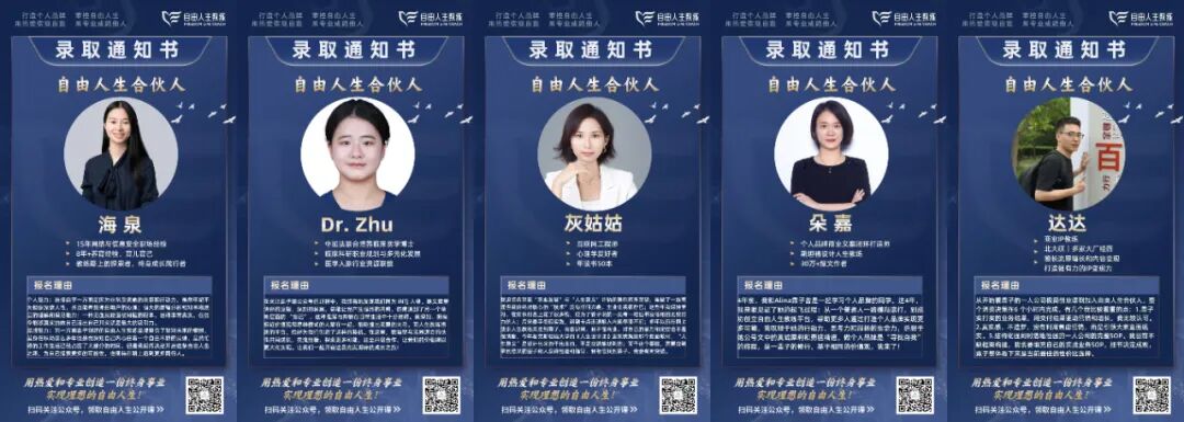 自由人生教练:由Alina霖子创立于2022年2月。旨在帮助每个普通人挖掘自己的潜力,学习人生教练、打造个人品牌,提升生命能量状态,用知识技能和擅长热爱的事情成就一份属于自己的事业。