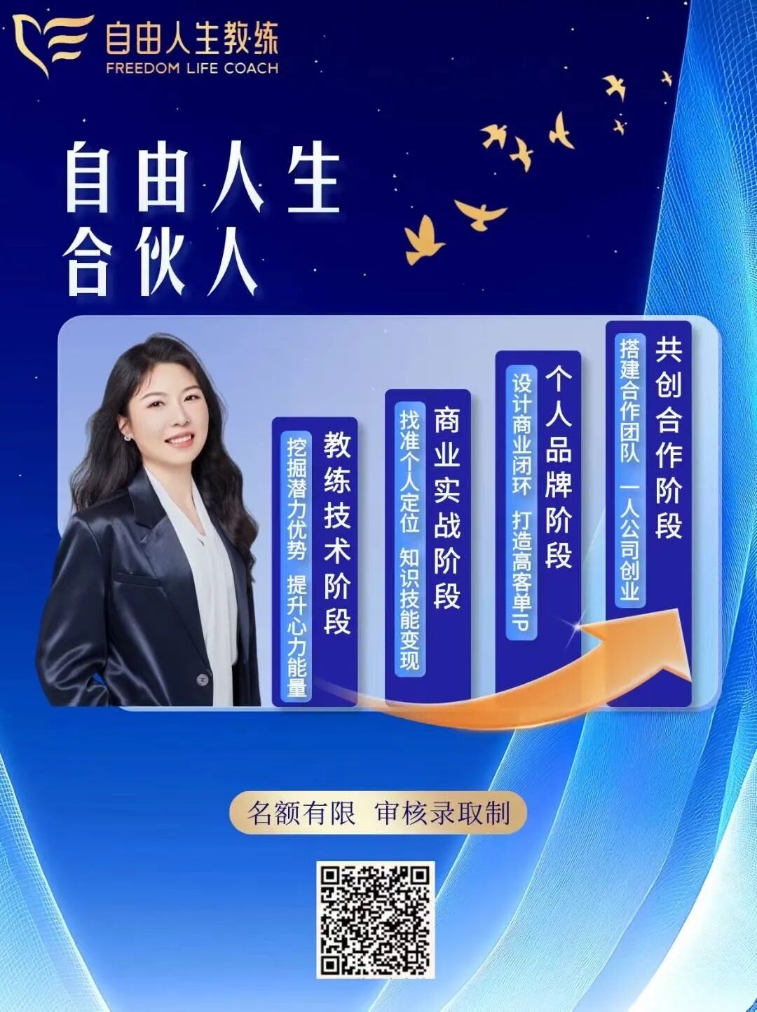 在【自由人生教练】,我们从不贩卖焦虑,也不追逐短暂的热度。我们始终坚信:打造个人品牌,是一个厚积薄发的过程。只有当你愿意沉下心来夯实基础,明确方向,扎实服务,在一次次实践中不断调整定位、优化路径,最终才能跑通属于自己的商业闭环。而一旦闭环跑通、方向清晰,那些曾经看似“缓慢积累”的时光,便会在某个节点汇聚成爆发的能量,实现质的飞跃。在【自由人生教练】,我们陪每一位愿意认真走路的人,慢慢来,稳稳走,从0到1,再从1到10,沉淀出属于自己的品牌价值和时间复利。自由人生合伙人